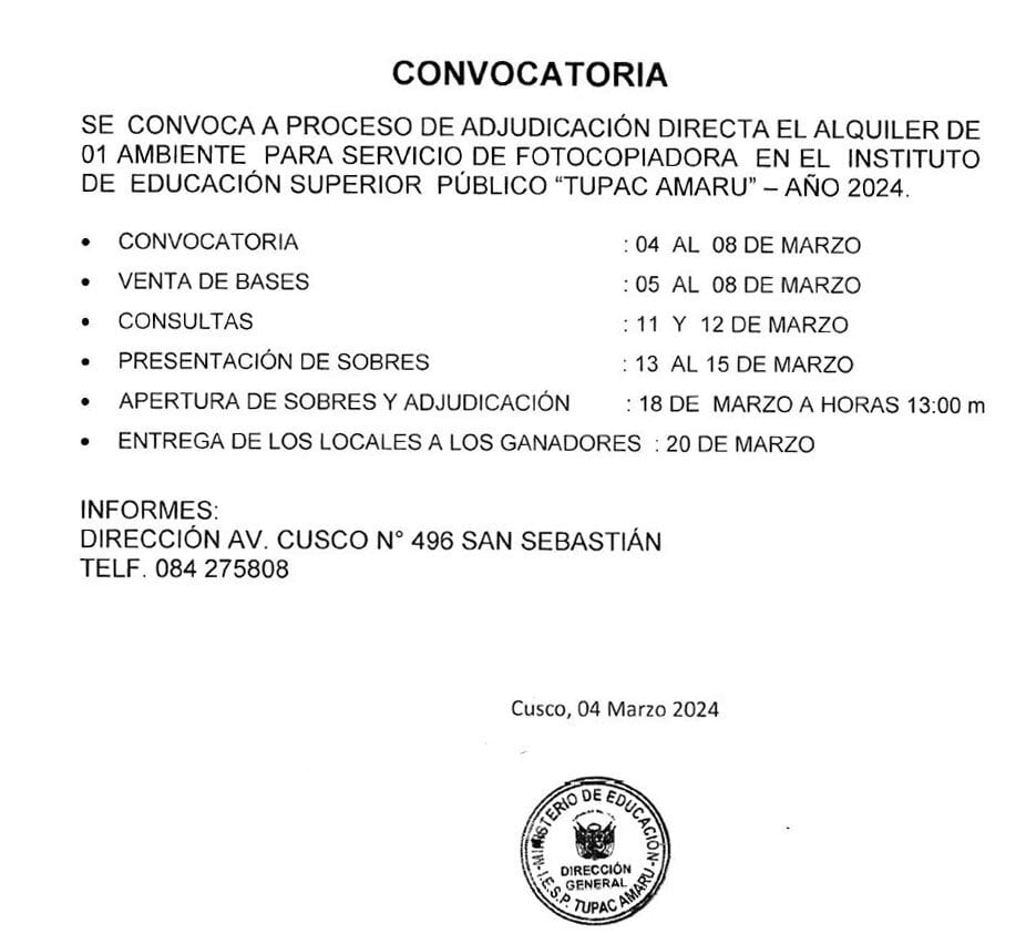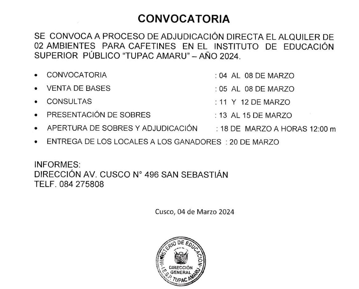 CONVOCATORIA PROCESO CONTRATACION DOCENTE 2024