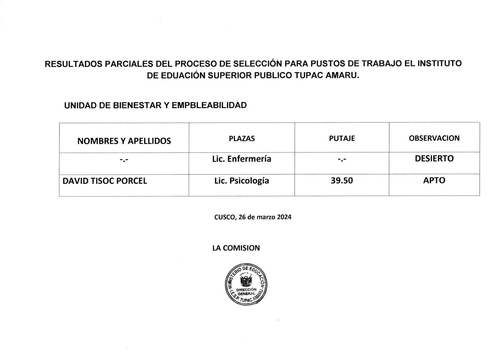 RESULTADOS PARCIALES PROCESO CONTRATACION DOCENTE 2024