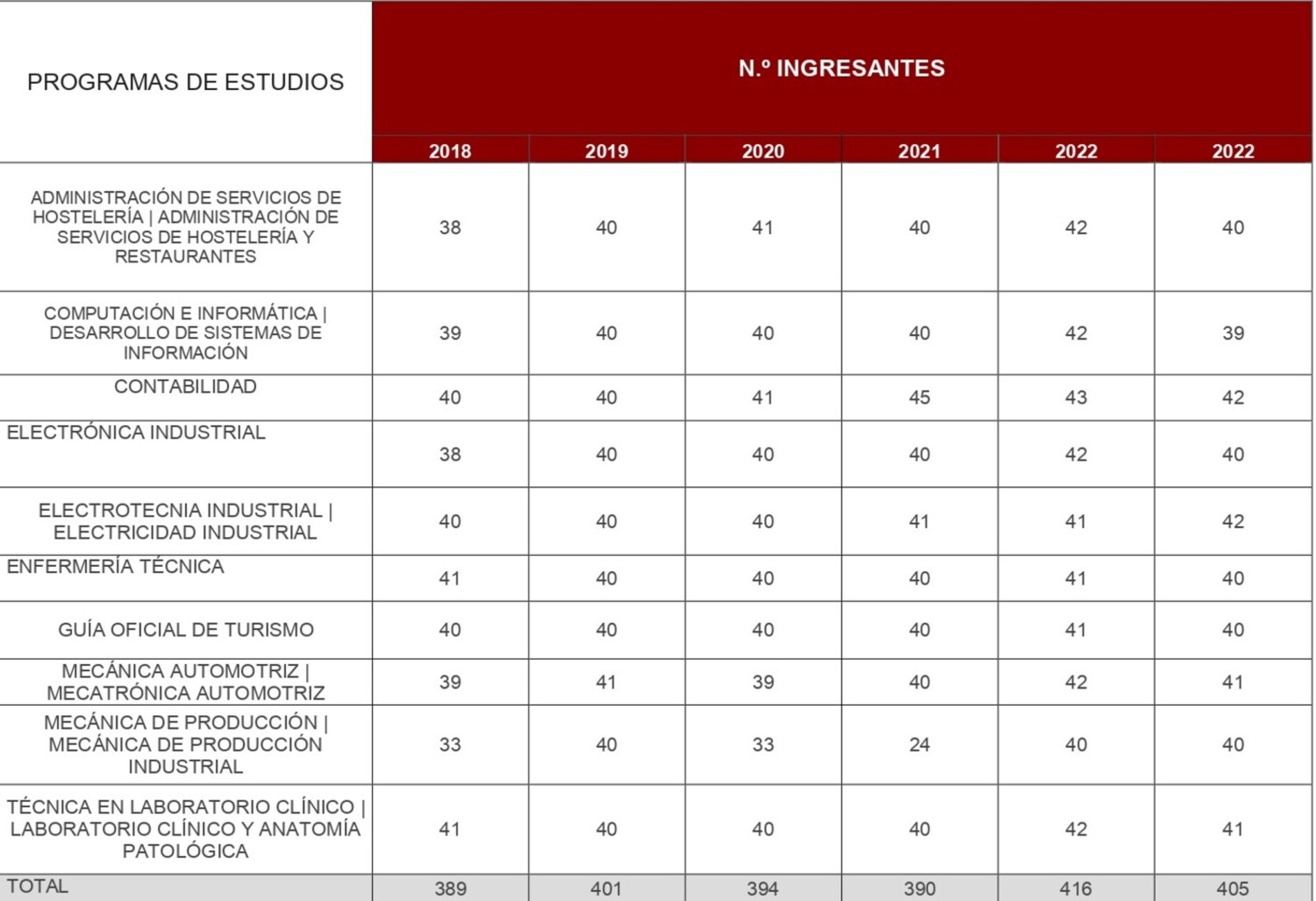 Nota: Los programas de estudio que cambiaron de denominación, iniciaron su plan a partir del 2020